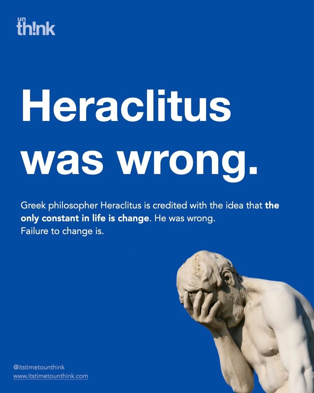 Greek philosopher Heraclitus is credited with the idea that the only constant in life is change. He was wrong. Failure to change is.